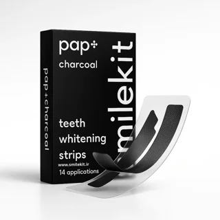 نوارهای سفید کننده دندان زغالی اسمایل کیت مدل دابل الاستیک ذغال فعال